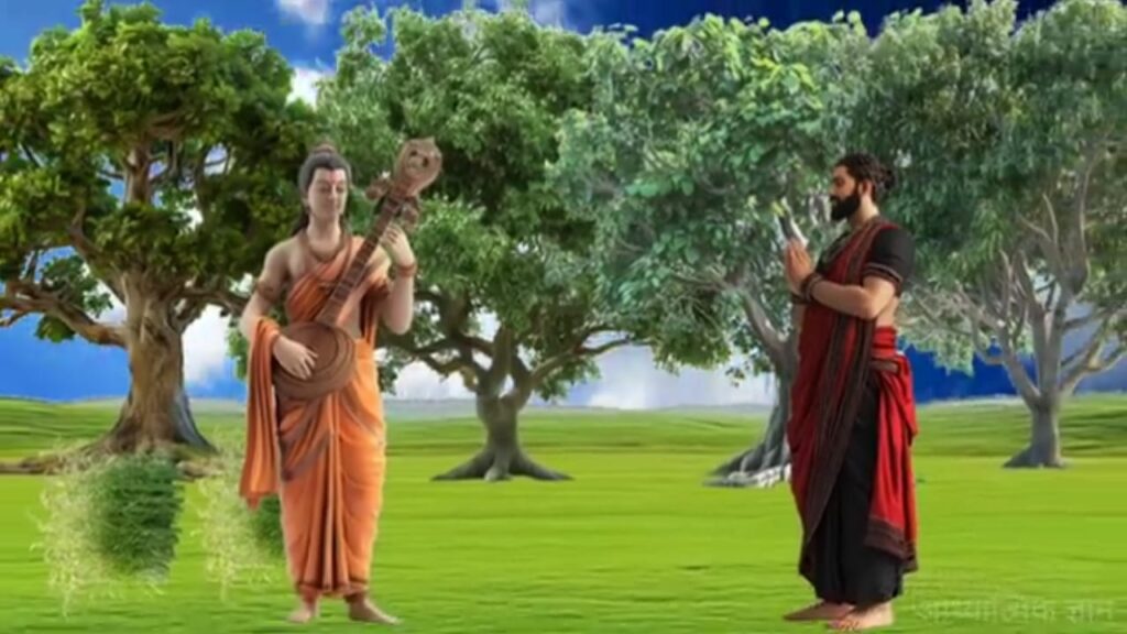 जंगल में एक सांप ने मेरी पत्नी को काट लिया जिससे उसकी मृत्यु हो गई मैं जब अपनी पत्नी के साथ मरने जा रहा था तब एक धर्मराज ने मुझ पर दया की और मेरी आयु के बिस वर्ष मेरी पत्नी को देने के बाद उसे पुण्य जीवित कर दिया फिर हम उस जंगल से आगे बढ़े कुछ दिनों बाद हम एक स्थान पर पहुंचे जहां एक साधु का डेरा था