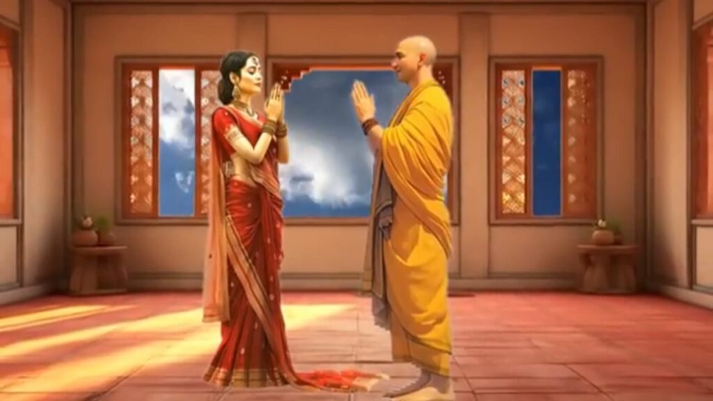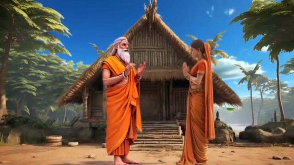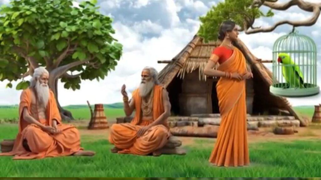 जब वे वहां पहुंचे तो उन्होंने देखा कि एक सुंदर युवा साधु शांति से बैठकर कोई साधना कर रहा था वे दोनों बहुत ही थके हुए थे इसलिए वे साधु के पास बैठ गए उस समय राजकुमार ने अपनी पत्नी से कहा राजकुमारी हमें प्यास लगी है हम कुएं पर जाकर पानी पी लेते हैं अगर तुम भी प्यासी हो तो तुम्हारे लिए भी पानी ले आते हैं